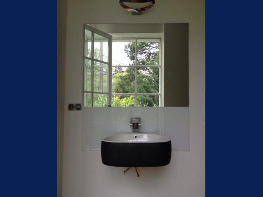 Pflegeleichte, farbbeschichtete Waschbeckenrückwand