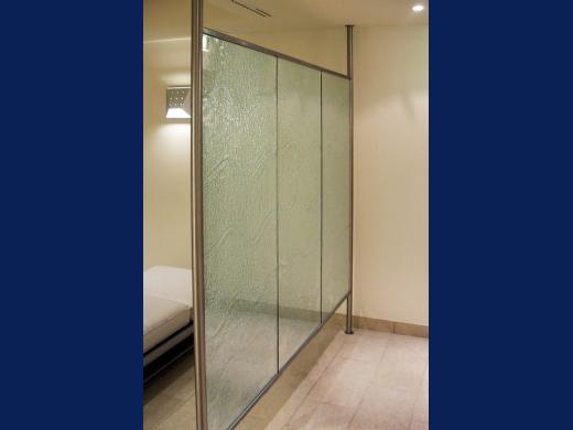 Edelstahlparavent mit Schmelzglasfüllung